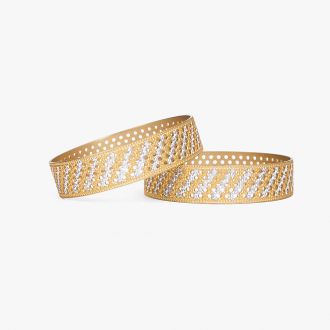 Short Description Gold Bangles are a staple of every women's jewellery box and these gold bangles will be a great addition to your collection. These gold bangles made from 18kt yellow gold have a ladder type design which makes it stand out from the conventional type jewellery. The unique design, beautiful cut and finish of this bangle will make it the perfect gift for your loved ones on any occasion.