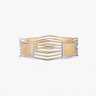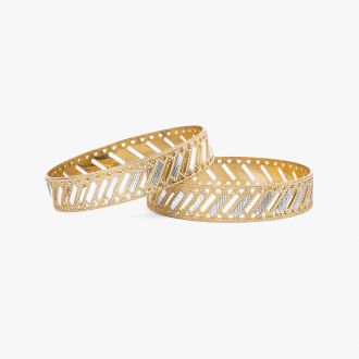 Short Description These gold bangles have an intricate design. It is made of 18kt yellow gold which means that it can be worn with any kind of dress. This beautiful creation can be worn to create a statement and yet is comfortable enough to be worn daily.