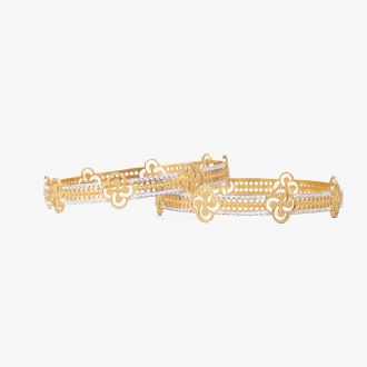 Short Description It's just not a fashion statement but also a social statement. The gold bangle is designed with flowers in the middle that add to its look. It will be an awesome gift for your girlfriends/wives on Valentine's day or any other special occasion.